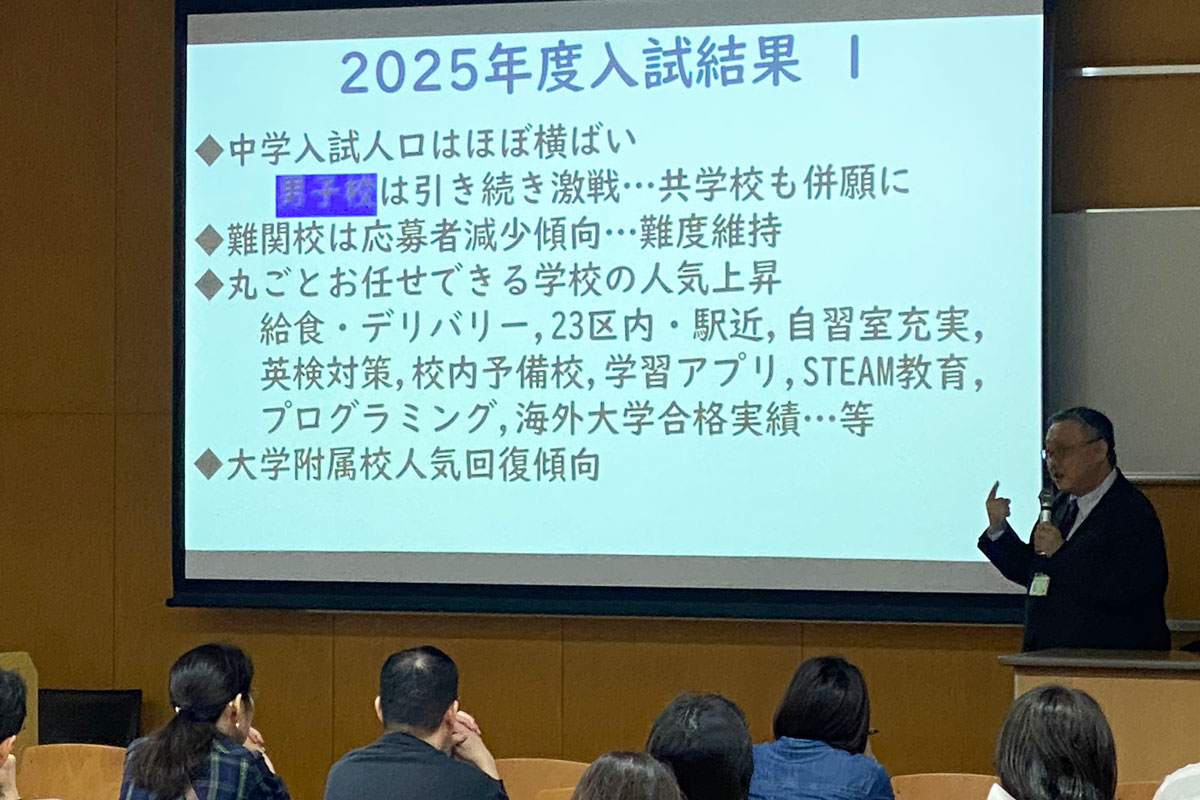 私学の先進性を体現する多様なプログラムがあります。世界が注目するチャータースクール「High Tech High」の教員による課題解決型学習(PBL)を盛り込んだSan Diegoプログラムや、英国ケンブリッジ大学やイートン校での研修、カナダでの長期留学、ダブルディプロマ(本校に在籍しながらカナダの高校卒業資格も習得)など多種のグローバルプログラムを設定するとともに、運動部20種、文化部28種に及ぶクラブ活動や生徒会、委員会活動など生徒の多様性を支援するシステムがあります。また、基礎力養成から科目ごとの大学別入試対策まで600を超える講習や池上彰、根岸英一他、日本を代表する講師陣を招いた「大学訪問授業」などを設けています。さらに2028年には新校舎の建築が予定されており、高校創立50周年を迎える学園生活のさらなる充実を図ります。例年、同傾向の問題を多数出題するのでHPで過去問をチェックしてみてください。